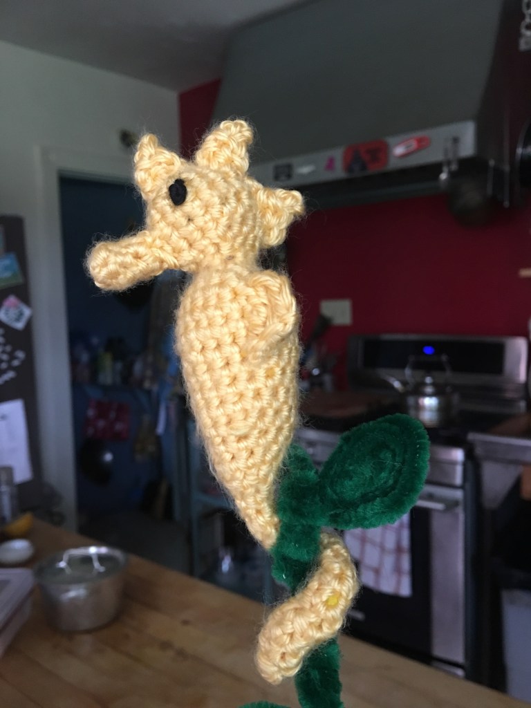 It is my pleasure to introduce Amigurumi Seahorse. This series has been such a pleasure, and I have wanted to complete it for so long. The perfect summer activity, a bit of the Ocean whether I’m in my kitchen or my backyard. Good times!
