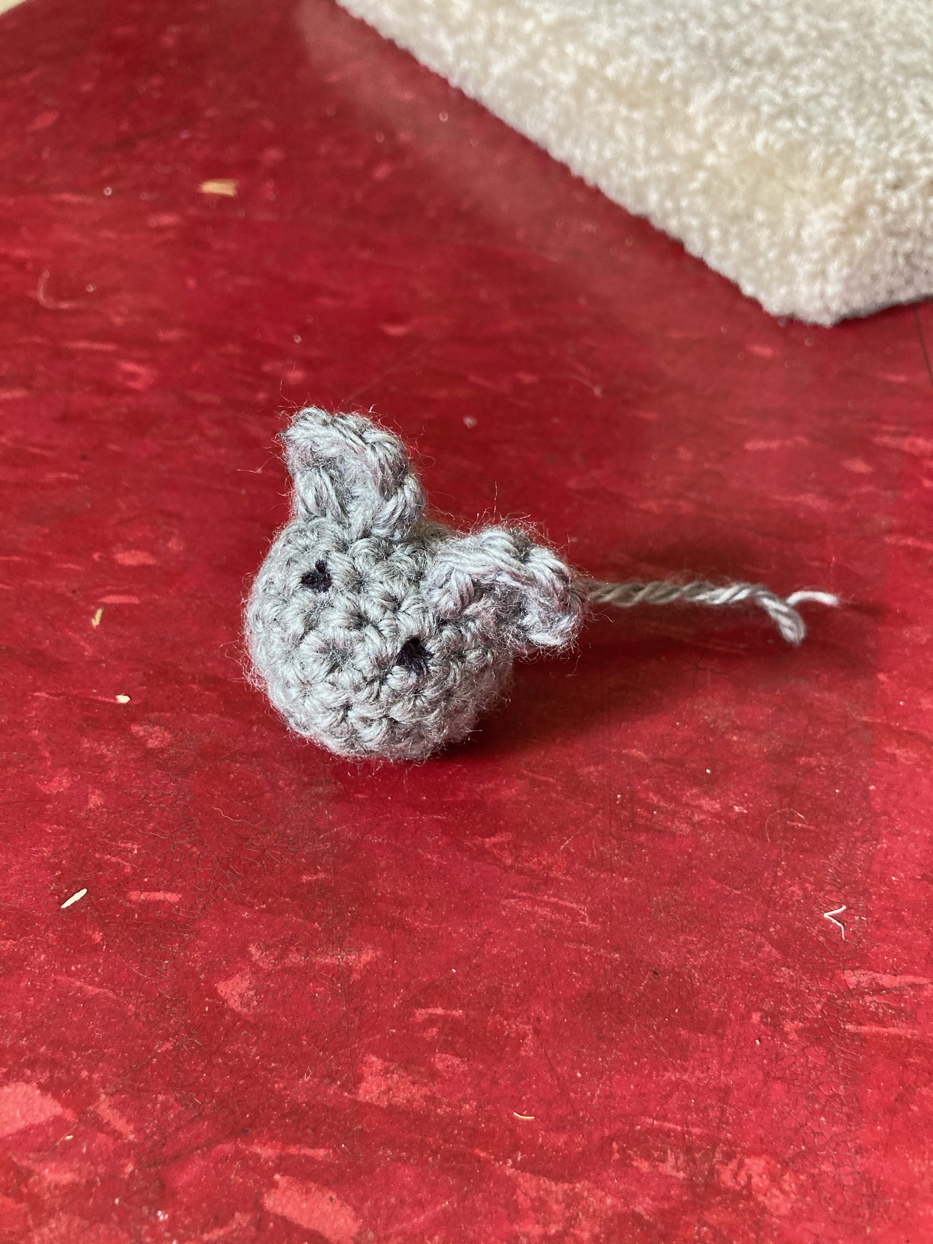 2020 was a crazy year, challenging in so many ways, and at some point during COVID quarantine I lost my drive to make new amigurumi characters. I did manage an amigurumi of the COVID virus and other related characters in order to remain creative and vent, but the series eventually ended and I didn’t pick up a new project. So when our beloved Pierre arrived in November my needlecraft muse returned and I have begun making crochet cat toys for him to play with. See below an amigarumi mouse, complete with ears and a tail.