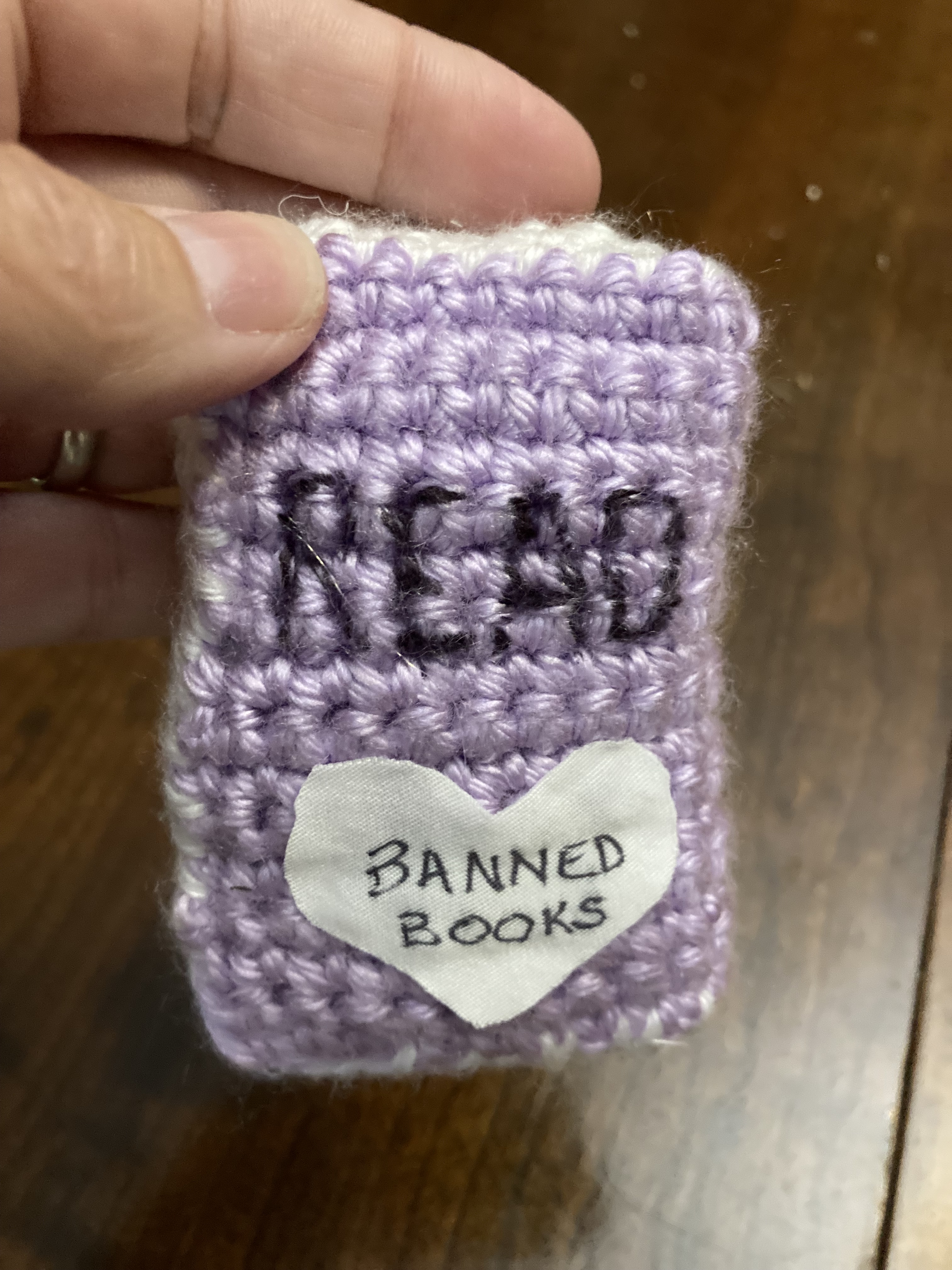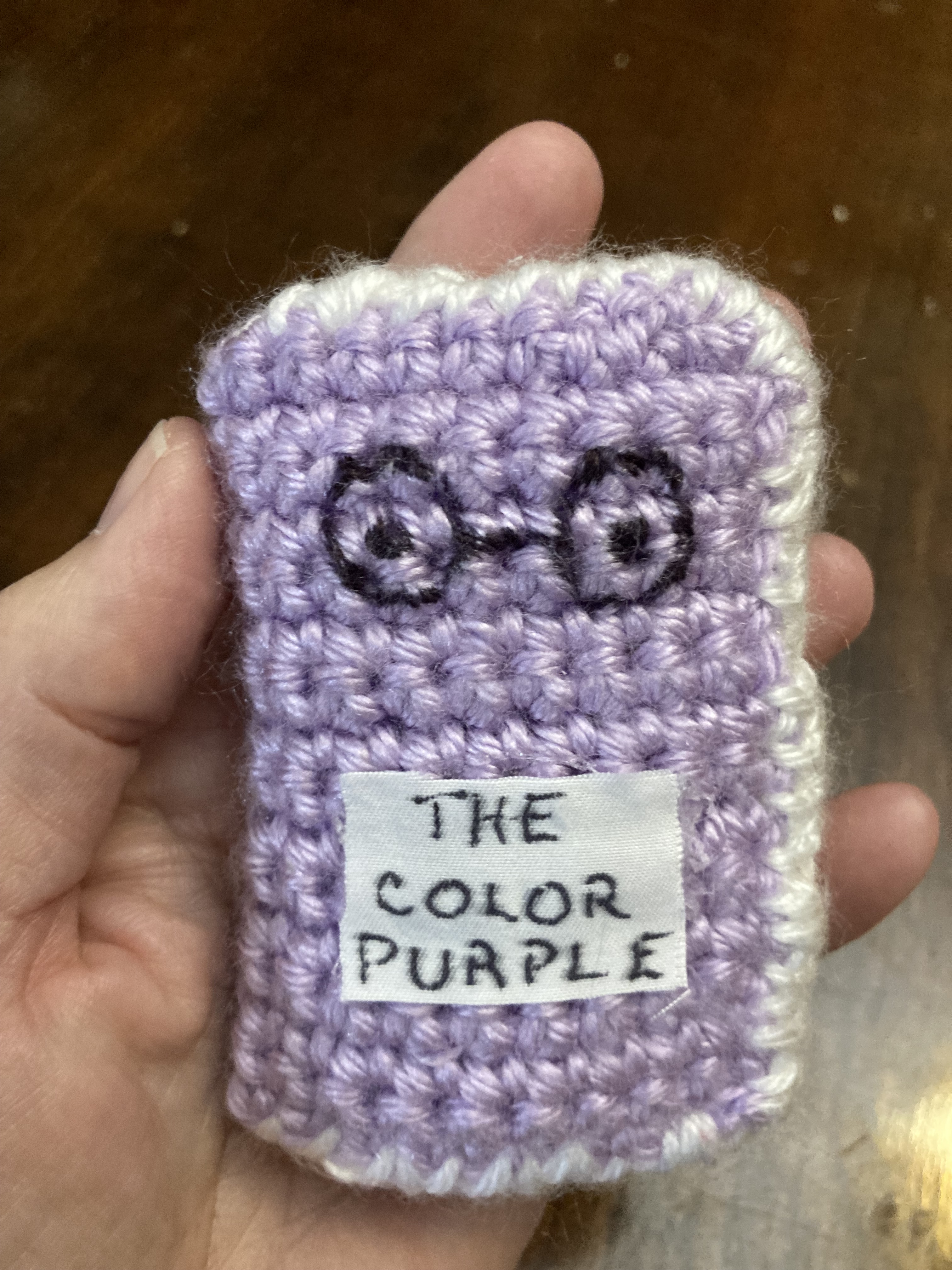 Sorry it took so long to complete these. I was a bit ambitious to try and complete a new one each day AND take care of the rest of my life 🙂 The first three books in my Amigurumi Library have been joined by Catcher in the Rye, Captain Underpants and The Color Purple. The Color Purple, by Alice Walker was the first book I read as a teenager where I knew it was banned by some schools and libraries. My parents sent me to a school where I was educated not programed, thank you. And thank you to the teachers who read it with me and others, not turning away for the violent or uncomfortable parts but finding needed meaning and understanding. Even as a young person I knew that the book was fiction, but that the experiences were real for many people, and it moved me deeply. After 20 years as a social work and child and family counselor I can only say that it may have been one of the things that set me on a path to listen to those who society would not hear, and advocate for the rights of those people. A healthy society does not ban books, it uses books to shed light on the issues that most need to be revealed. In order to address those issues, and make our world better for people as a whole not just some. Read banned books, and share the amigurumi joy. As always I would enjoy hearing any comments and please feel free to contact me.