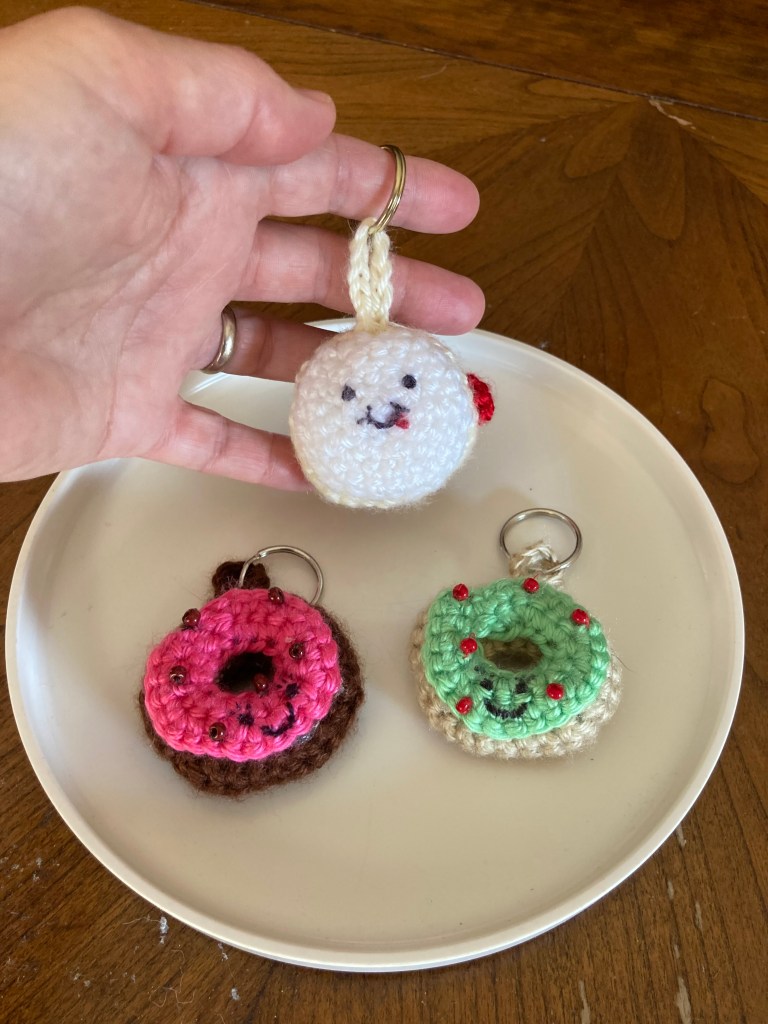 Maybe both! These Amgurumi Donuts originally designed to be keychains would work equally well as Amigurumi Christmas Tree Ornaments. I will be delivering them soon http://Local Folk Creative Studio in Kutztown . Sharing the Amigurumi Joy. And subscribe to get upcoming information on classes I will be teaching at Local Folk in January on the basics of crochet and how to make your own Amigurumi.