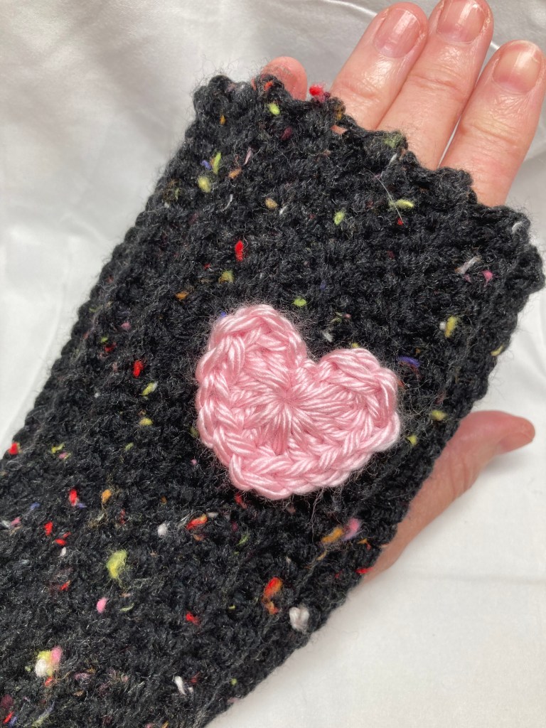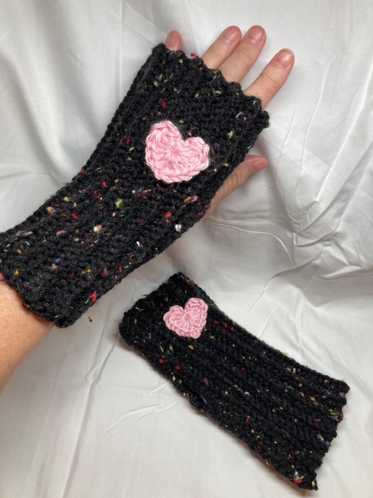 Gearing up for Valentines Day and I decided to add some appliques to my fingerless gloves. These little hearts came out well and look great I think on the black fingerless gloves. Love to hear any feedback from others. #crochet #fingerlessgloves #valentines